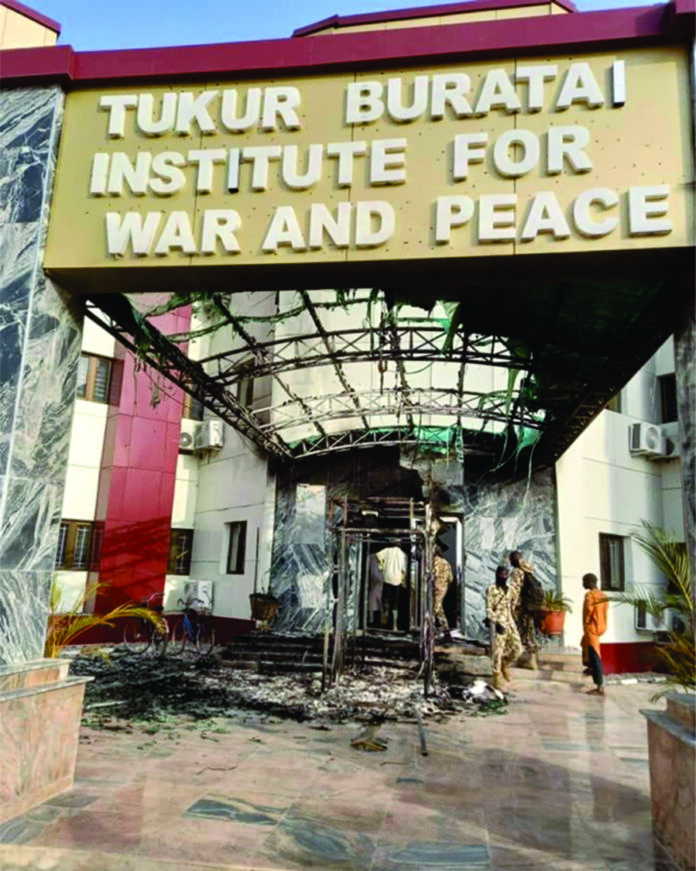 Thus it could not have come as an irony that one of the areas attacked within the University premises was none other than the building that bore the name of Buratai: Tukur Buratai Institute for War and Peace, which came under heavy attack and sustained extensive damages. The attack and near-destruction of the building is a loud and clear statement by the Islamic Jihadist fighters that they care little about the concept of war and peace as enunciated by the Institute and as propagated by the Nigerian State and its Western intellectual backers.