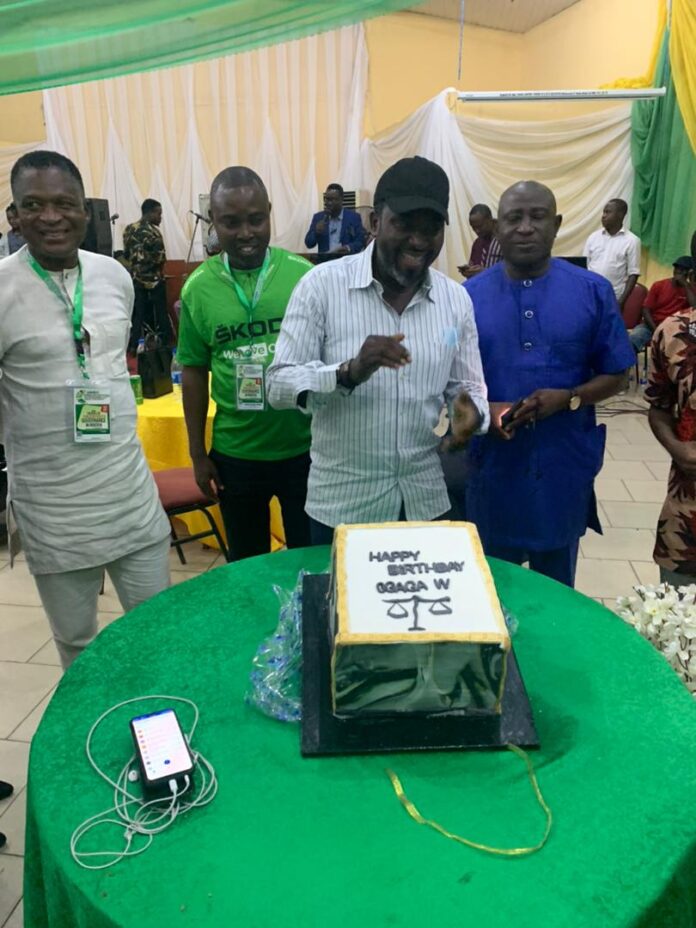The Nigerian Bar Association SPIDEL Conference currently going on in the ancient city of Ibadan, capital city of Oyo State, took on air of celebration when the Local Organizing Committee of the Conference in conjunction with the NBA Welfare Committee hosted a surprise birthday party for one of their own, an equally surprised Mr Ogaga Emoghwanre Esq of the Benin Branch of NBA.
